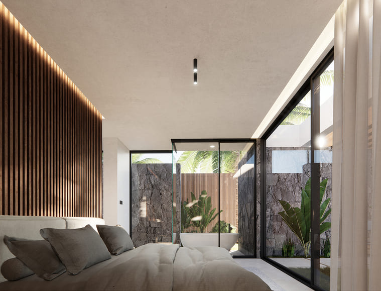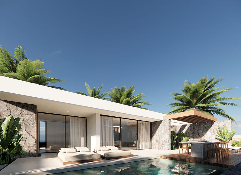 Villas de lujo con piscina privada, diseño bioclimático, espacios de bienestar y naturaleza.